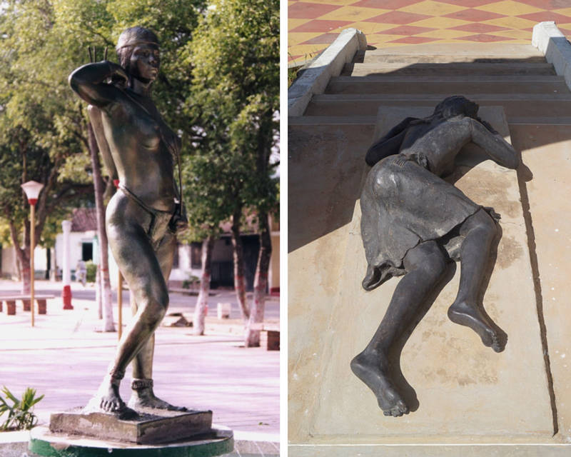 委内瑞拉对“北方强大入侵者”记忆的最初源头里,有委身投敌的基因,也有锐意抗争的基因。上面的地图中,委内瑞拉湾南方连着的泪滴形大湖名叫“马拉开波”,通常认为这个名字意为“马拉死了”,是纪念抵抗奥赫达等人被害的土著酋长马拉的。马拉死后,新一代土著女英雄舒丽雅(Shuria,西语发音讹变为“苏利亚”Zulia)和她的恋人(马拉的儿子)率领南方各部落继续抵抗殖民军,最终壮烈牺牲;她的事迹在马拉开波沿岸民间代代相传,如今环绕马拉开波湖的整个联邦州以她的名字命名为“苏利亚州”。